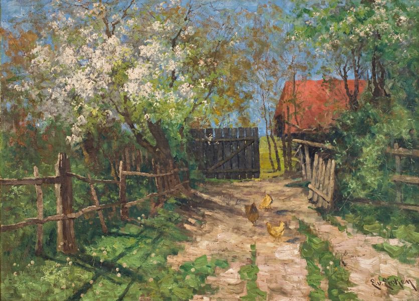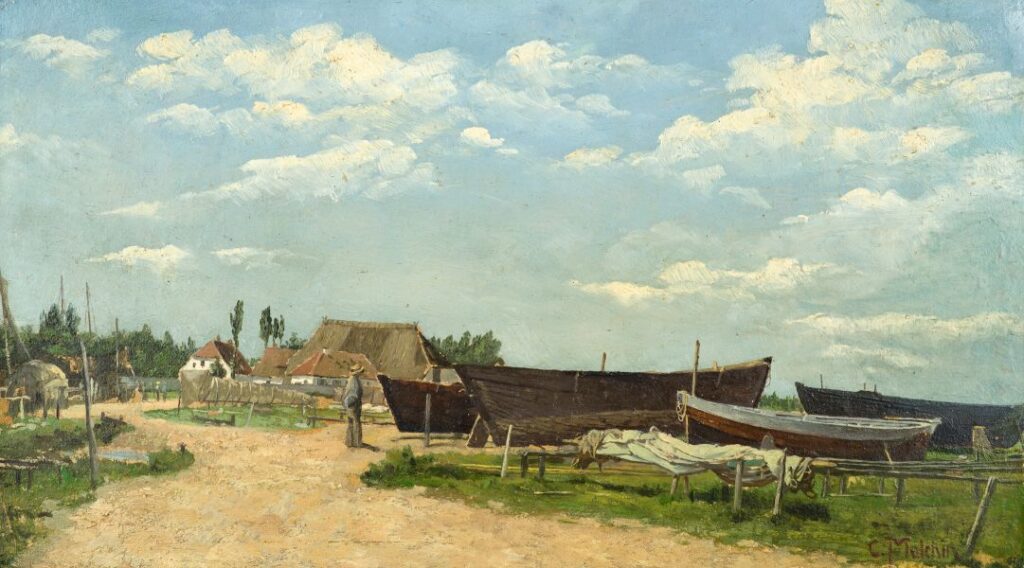 Das von der Natur geprägte, einfache Leben der Landbevölkerung und der Fischer in den Dörfern stand im Mittelpunkt der Kunst Malchins. Immer wieder überraschend ist die Fähigkeit des Künstlers, Wolkenhimmel zu gestalten, die die ganze Stimmung einer Tages- und Jahreszeit in unserem meeresnahen Landstrich in sich tragen.
