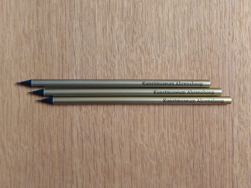 Bleistift in der Stärke HB in der Farbe Gold mit schwarzer Aufschrift Kunstmuseum Ahrenshoop.